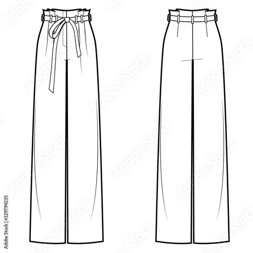 Vector Illustration Of Women S Wide Pants With Belt Front And Back Views Apparel Wall Mural Appar Olesya