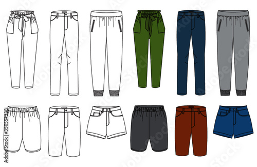 Pants Set Fashion Flat Technical Drawing Template Apparel Wall Mural Appar Eva